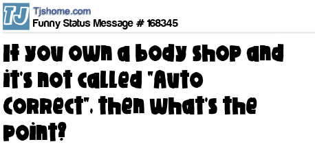 X says if you own a body shop and it's not called "Auto Correct", then what's the point?