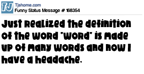X says Just realized the definition of the word "word" is made up of many words and now I have a headache.