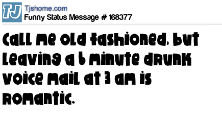 X says Call me old fashioned, but leaving a 6 minute drunk voice mail at 3 am is romantic.