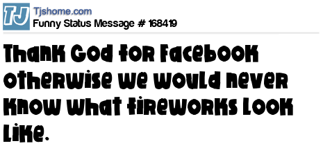 X says Thank God for Facebook otherwise we would never know what fireworks look like.
