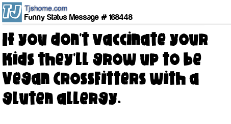 X says If you don't vaccinate your kids they'll grow up to be Vegan CrossFitters with a gluten allergy.