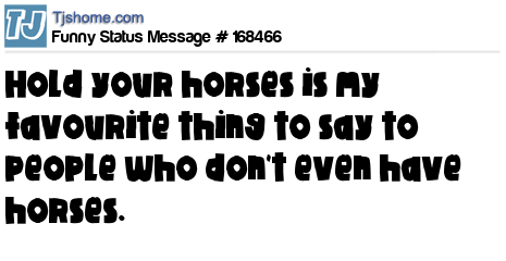 X says Hold your horses is my favourite thing to say to people who don't even have horses.