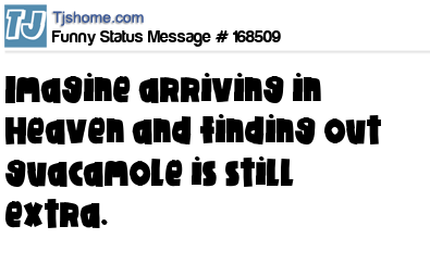 X says Imagine arriving in Heaven and finding out guacamole is still extra.