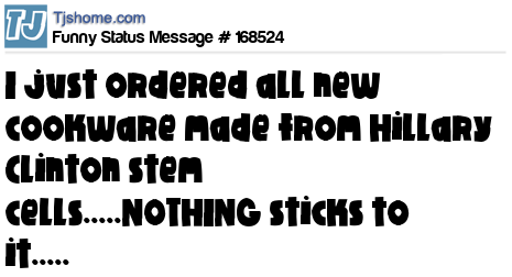 X says I just ordered all new cookware made from Hillary Clinton stem cells.....NOTHING sticks to it.....