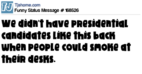 X says We didn't have presidential candidates like this back when people could smoke at their desks.