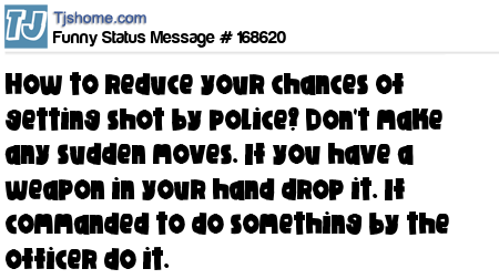 X How to reduce your chances of getting shot by police? Don't make any sudden moves. If you have a weapon in your hand drop it. If commanded to do something by the officer do it.