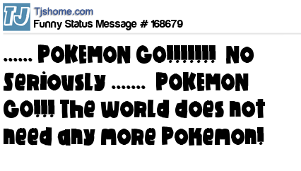 X  ...... POKEMON GO!!!!!!!  No Seriously .......  POKEMON GO!!! The world does not need any more Pokemon!