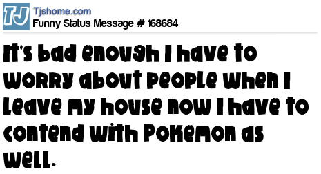 X says It's bad enough I have to worry about people when I leave my house now I have to contend with Pokemon as well.