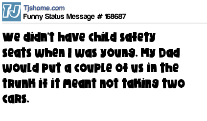X says We didn't have child safety seats when I was young. My Dad would put a couple of us in the trunk if it meant not taking two cars.