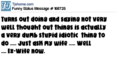 X Turns out doing and saying not very well thought out things is actually a very dumb stupid idiotic thing to do ..... Just ask my wife ..... Well .... Ex-Wife now.