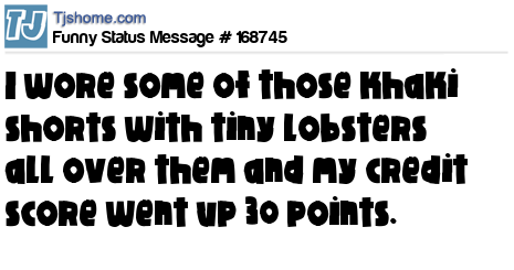 X says I wore some of those khaki shorts with tiny lobsters all over them and my credit score went up 30 points.