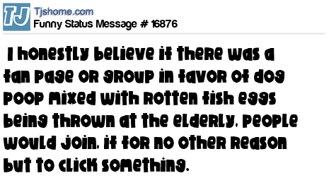 X says I honestly believe if there was a fan page or group in favor of dog poop mixed with rotten fish eggs being thrown at the elderly, people would join, if for no other reason but to click something.