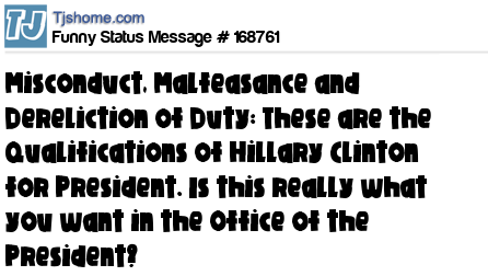 X Misconduct, Malfeasance and Dereliction of Duty: These are the Qualifications of Hillary Clinton for President. Is this really what you want in the Office of the President?