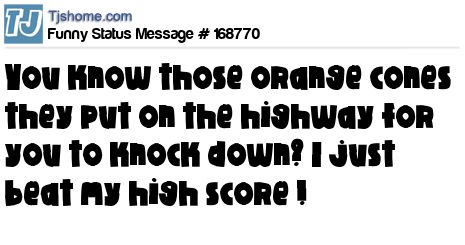- # 192252 You know those orange cones they put on the highway for you to knock down? I just beat my high score! WooHoo!