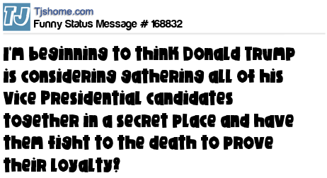 X I'm beginning to think Donald Trump is considering gathering all of his Vice Presidential candidates together in a secret place and have them fight to the death to prove their loyalty?