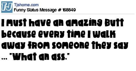 - # 103097 I must have an amazing butt because every time I finish talking to someone & turn around to walk away, I hear them whisper, "What an Ass!"