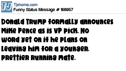 X says Donald Trump formally announces Mike Pence as is VP pick. No word yet on if he plans on leaving him for a younger, prettier running mate.