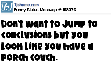 X says Don't want to jump to conclusions but you look like you have a porch couch.