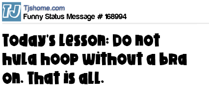X says Today's Lesson: Do not hula hoop without a bra on. That is all.