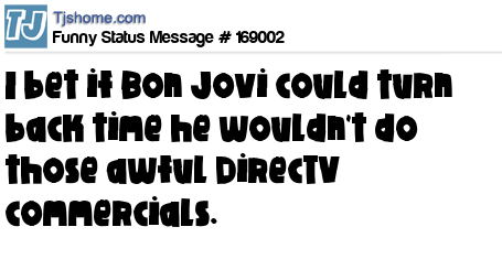 - # 168896 I bet if Bon Jovi could turn back time he wouldn't do those gawd awful DirecTV commercials.