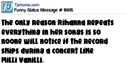 X says The only reason Rihanna repeats everything in her songs is so noone will notice if the record skips during a concert like Milli Vanilli.
