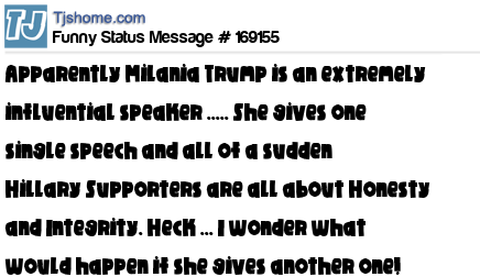 X Apparently Milania Trump is an extremely influential speaker ..... She gives one single speech and all of a sudden Hillary Supporters are all about Honesty and Integrity. Heck ... I wonder what would happen if she gives another one!