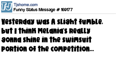 X says Yesterday was A slight fumble, but I think Melania's really gonna shine in the swimsuit portion of the competition...