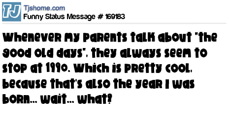 X says Whenever my parents talk about "the good old days", they always seem to stop at 1990. Which is pretty cool, because that's also the year I was born... wait... what?