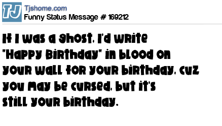 X says If I was a ghost, I'd write "Happy Birthday" in blood on your wall for your birthday, cuz you may be cursed, but it's still your birthday.