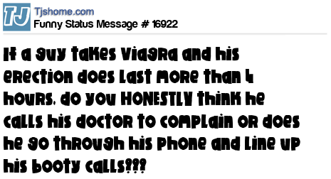 X If a guy takes Viagra and his erection does last more than 4 hours, do you HONESTLY think he calls his doctor to complain or does he go through his phone and line up his booty calls???
