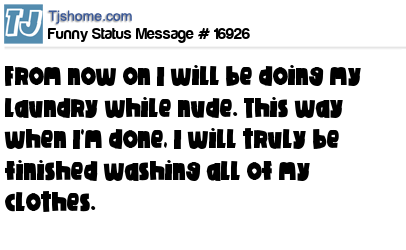 X From now on I will be doing my laundry while nude. This way when I'm done, I will truly be finished washing all of my clothes.