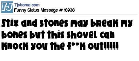 X says Stix and stones may break my bones but this shovel can knock you the f**k out!!!!!