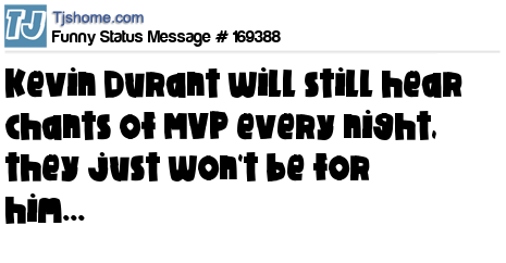 X  Kevin Durant will still hear chants of MVP every night, they just won't be for him...