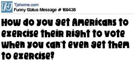 - # 172095 Some folks exercise their right to vote. I vote my right to not exercise.