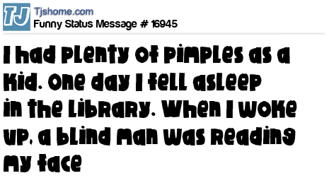 X  I had plenty of pimples as a kid. One day I fell asleep in the library. When I woke up, a blind man was reading my face