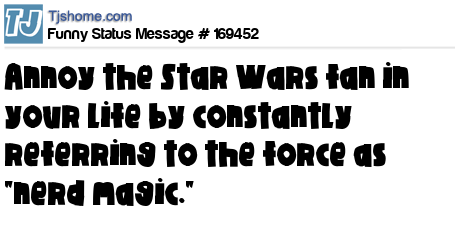- # 170251 Annoy the Star Wars fan in your life by constantly referring to the force as "geek magic."