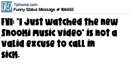 X says FYI: "I just watched the new Snooki music video" is not a valid excuse to call in sick.