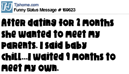 X After dating for 2 months she wanted to meet my parents. I said baby chill...I waited 9 months to meet my own.