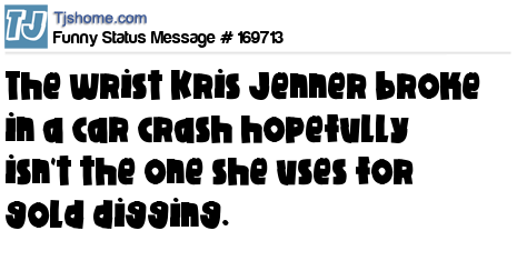 X says The wrist Kris Jenner broke in a car crash hopefully isn't the one she uses for gold digging.