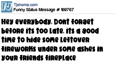 X says Hey everybody, Dont forget before its too late, its a good time to hide some leftover fireworks under some ashes in your friends fireplace