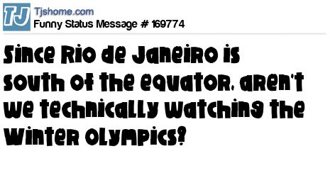 X Since Rio de Janeiro is south of the equator, aren't we technically watching the Winter Olympics?