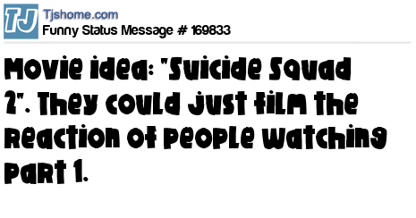 X says Movie idea: "Suicide Squad 2". They could just film the reaction of people watching part 1.