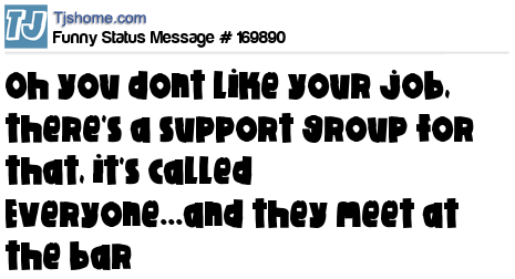 X says Oh you dont like your job, there's a support group for that, it's called Everyone...and they meet at the bar