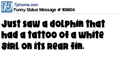 X says Just saw a dolphin that had a tattoo of a white girl on its rear fin.