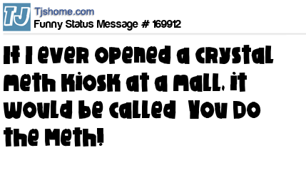 X says If I ever opened a crystal meth kiosk at a mall, it would be called “You Do the Meth!”