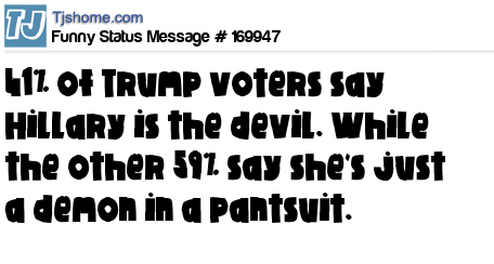 X says 41% of Trump voters say Hillary is the devil. While the other 59% say she's just a demon in a pantsuit.
