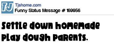- # 45105 Doughboy is survived by his wife Play Dough, three children: John Dough, Jane Dough and Dosey Dough, plus they had one in the oven. He is also survived by his elderly father, Pop Tart. The funeral was held at 3:50 for about 20 minutes.