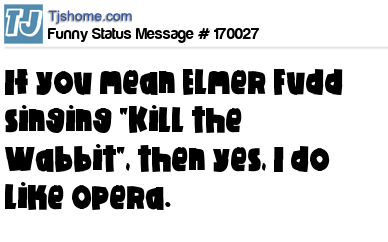 - # 186597 If you mean Elmer Fudd singing "Kill the Wabbit" then yes, I do like opera.