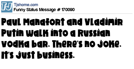 X says Paul Manafort and Vladimir Putin walk into a Russian vodka bar. There's no joke. It's just business.