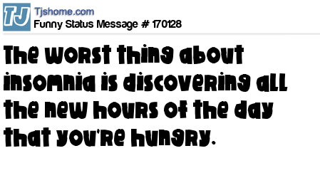 X says The worst thing about insomnia is discovering all the new hours of the day that you're hungry.